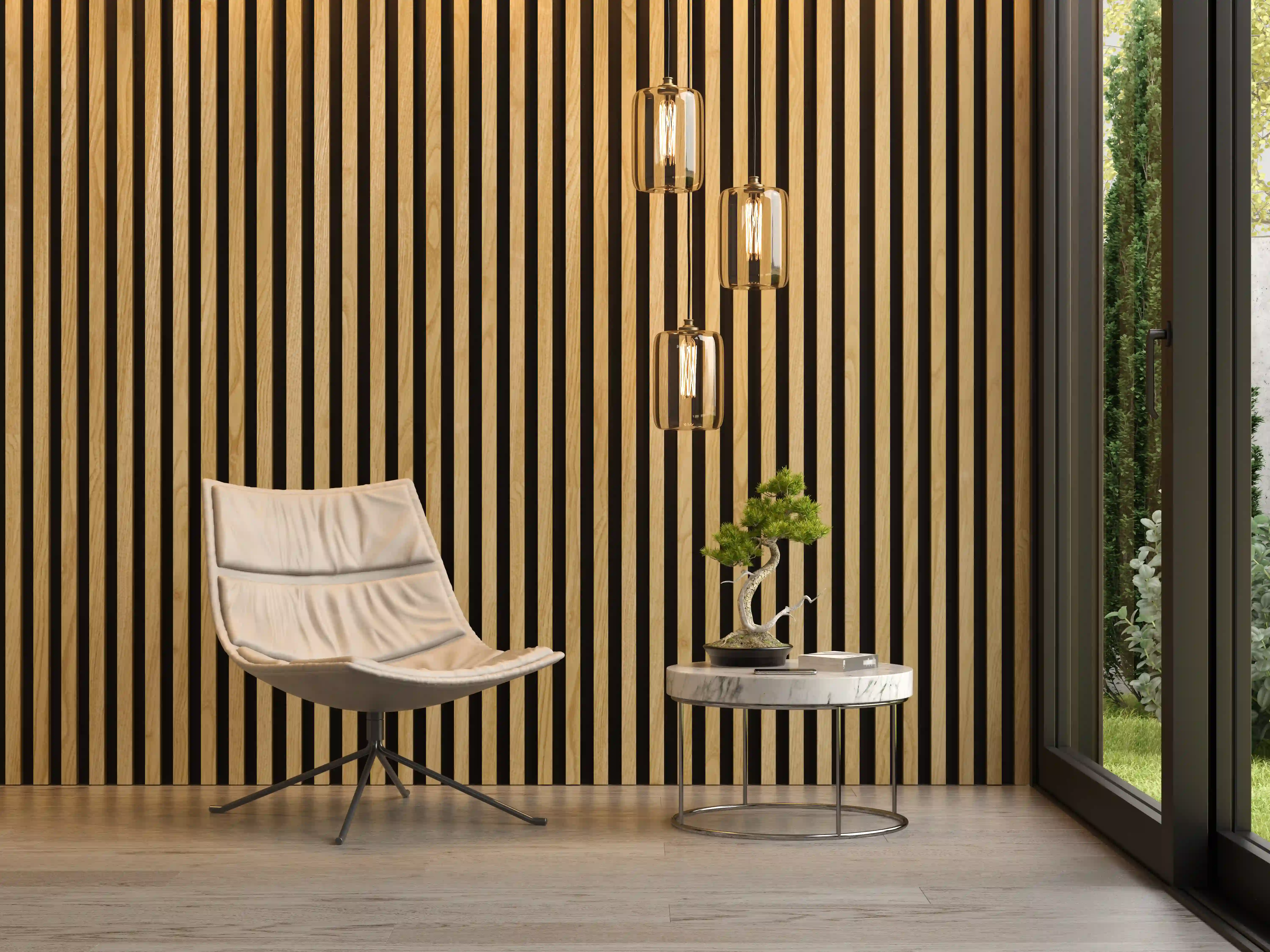 As a specialized Wall Cladding shop in Ernakulam, we understand that walls are a vital canvas for modern interior design. Our range includes sophisticated linear wood paneling and vertical wood slats that can be integrated with professional lighting for a warm, architectural look.